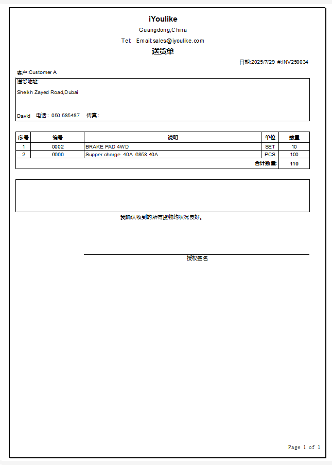 预览送货单